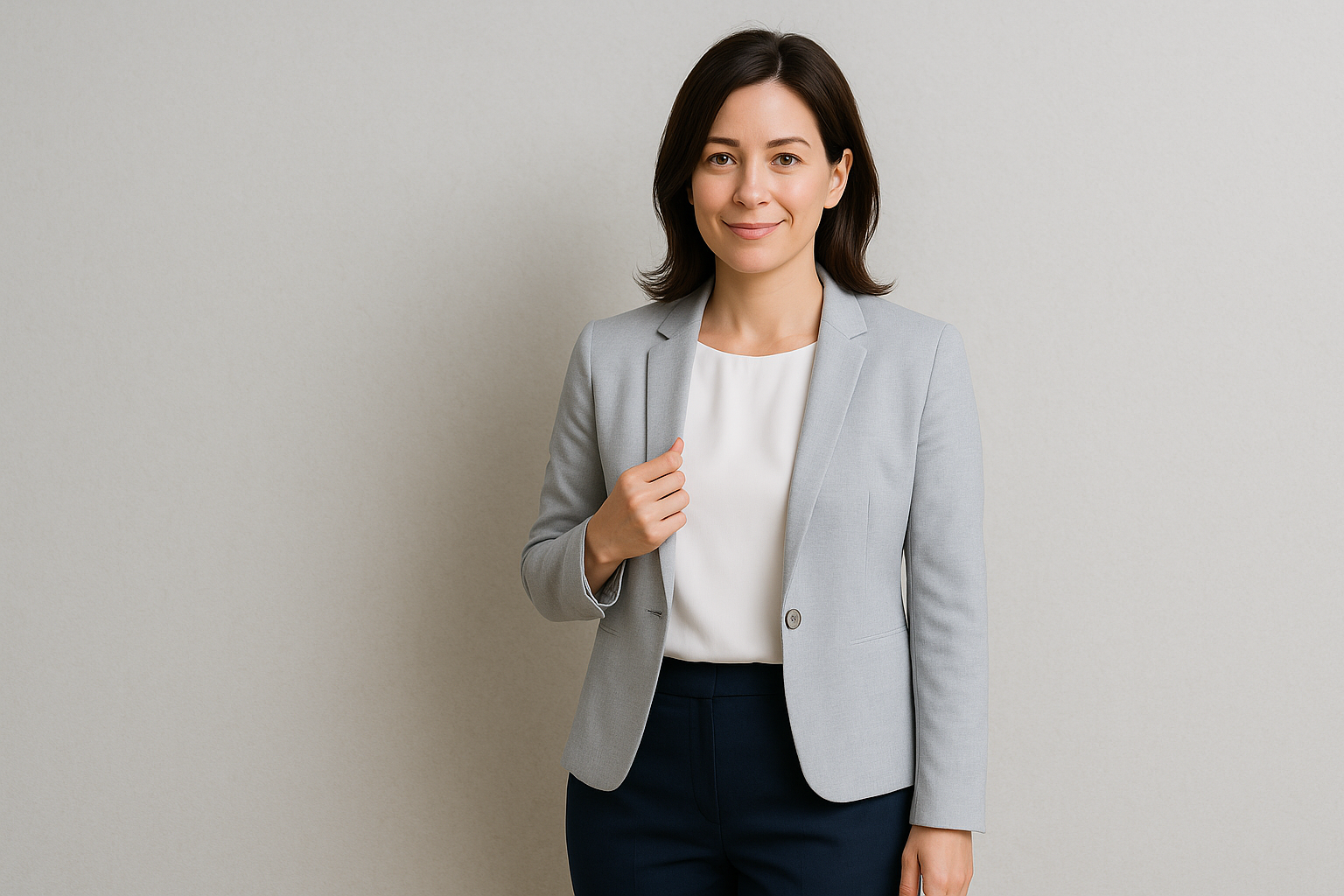 私(50代ponko)は、派遣初日に「ライトグレーのジャケット+白ブラウス+ネイビーパンツ」で出勤しました。